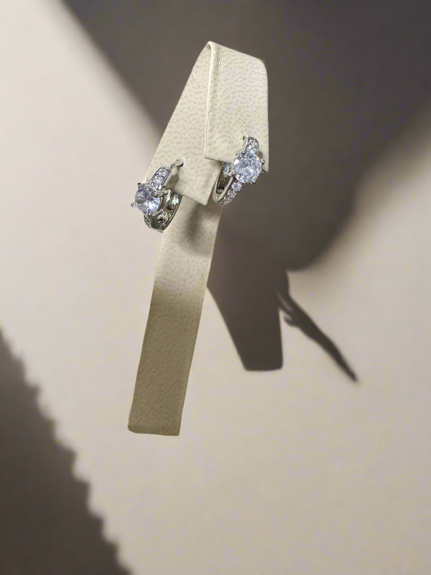 Small cuff earrings were featuring a rounded centerpiece surrounded by tiny diamonds.
