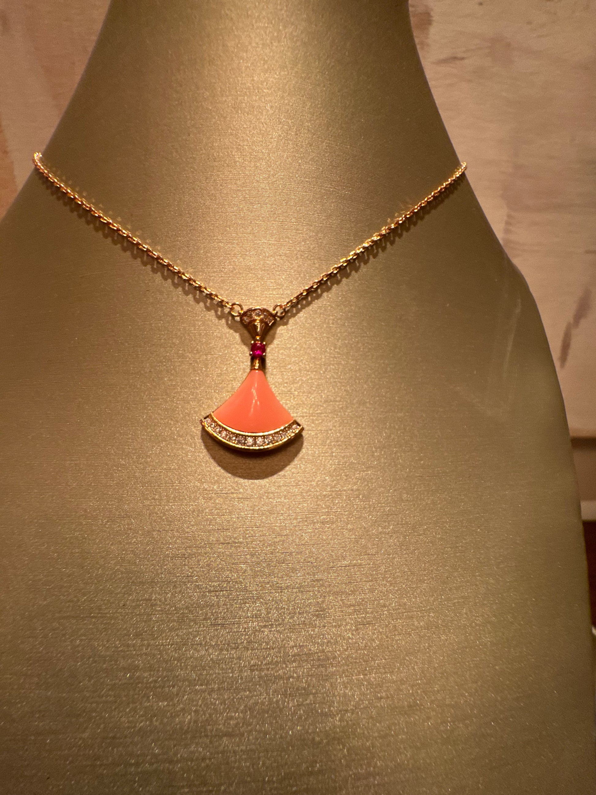 PInk rose dress with diamond accent.. 16 inch necklace with adjustableA pink rose dress with a diamond accent and a 16-inch necklace with an adjustable closure. closure