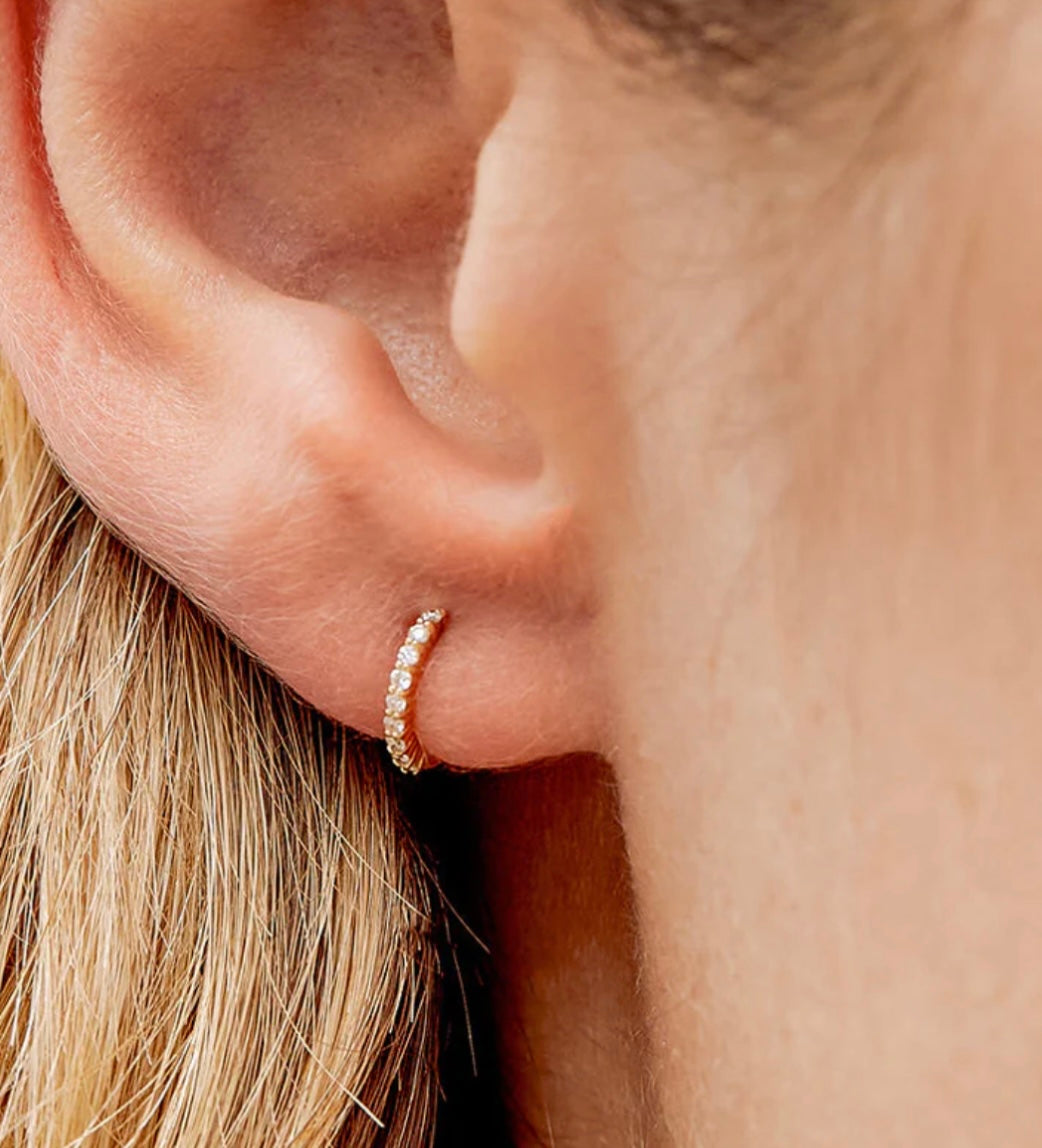 Gold Huggie Cuffed Earring. 9mm radius to fit perfectly to be solely worn or as an stacked timeless piece. Hinge closer, perfect for a second piercing.