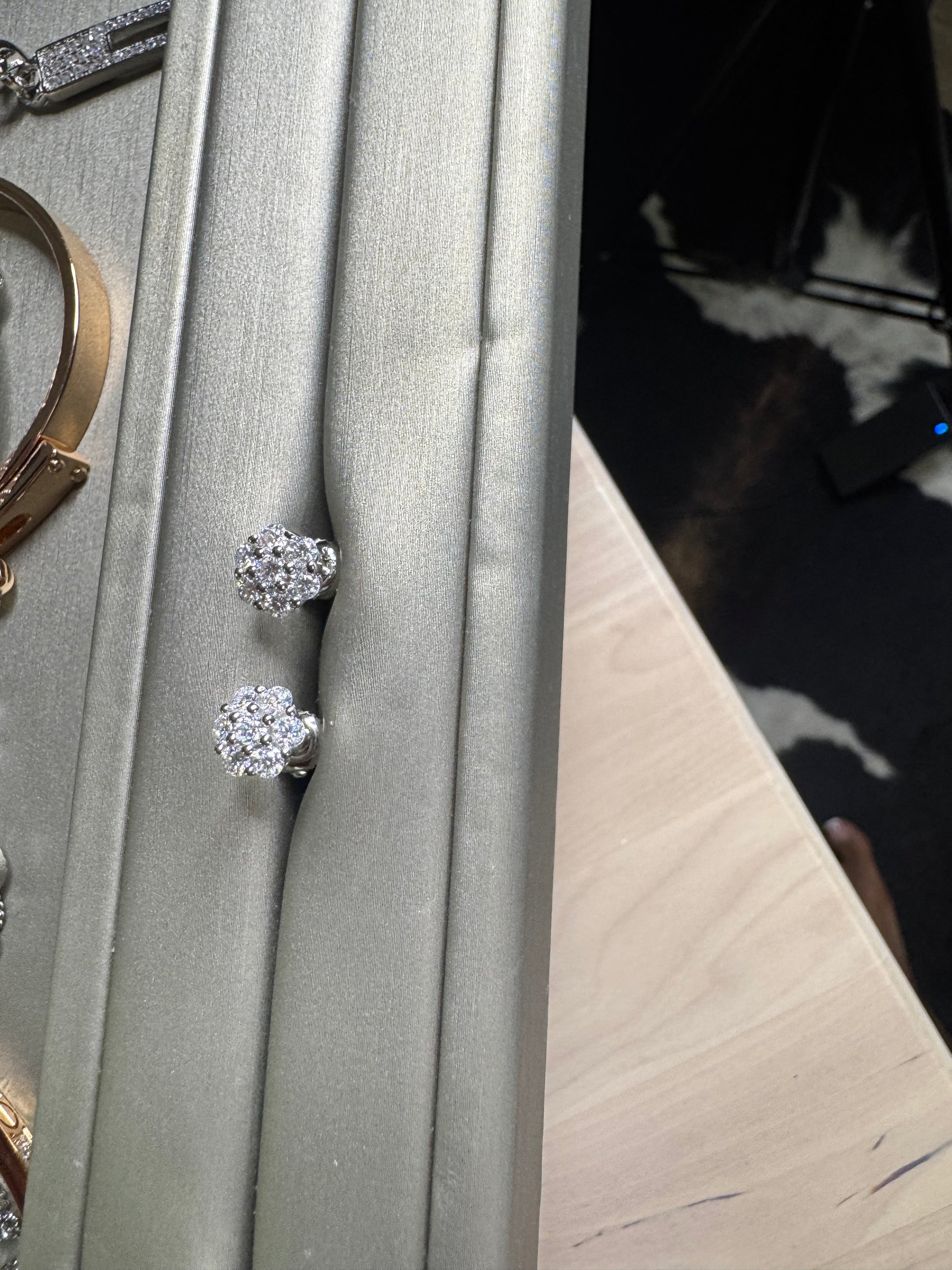 Silver Diamond screw on Cluster earring
